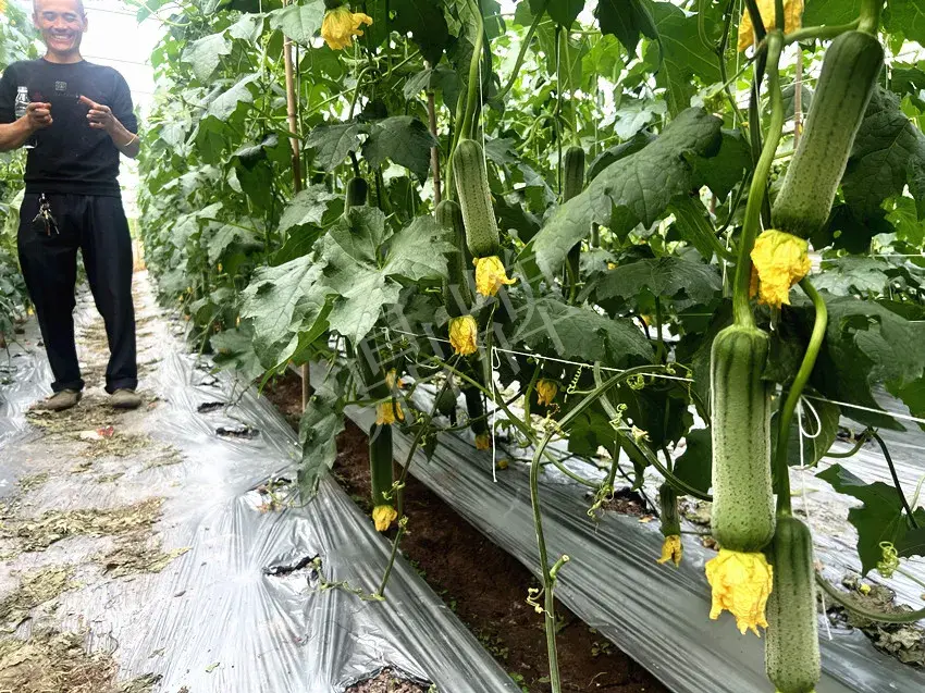 4月26日,四川峨眉山鼎牌經(jīng)銷商王俊英經(jīng)理發(fā)來(lái)了新推品種的照片,并來(lái)微信詳細(xì)說(shuō)明了新品種“硬果親田”在當(dāng)?shù)氐姆N植表現(xiàn)情況(該品種是鼎牌2023年下半年開(kāi)始向全國(guó)首次推出的三倍體絲瓜,引種地區(qū)2024年開(kāi)始種植)。