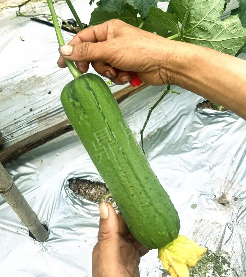 從照片可以看出,“硬果親田”絲瓜坐果早,短棒形,大小一致,瓜條勻稱。