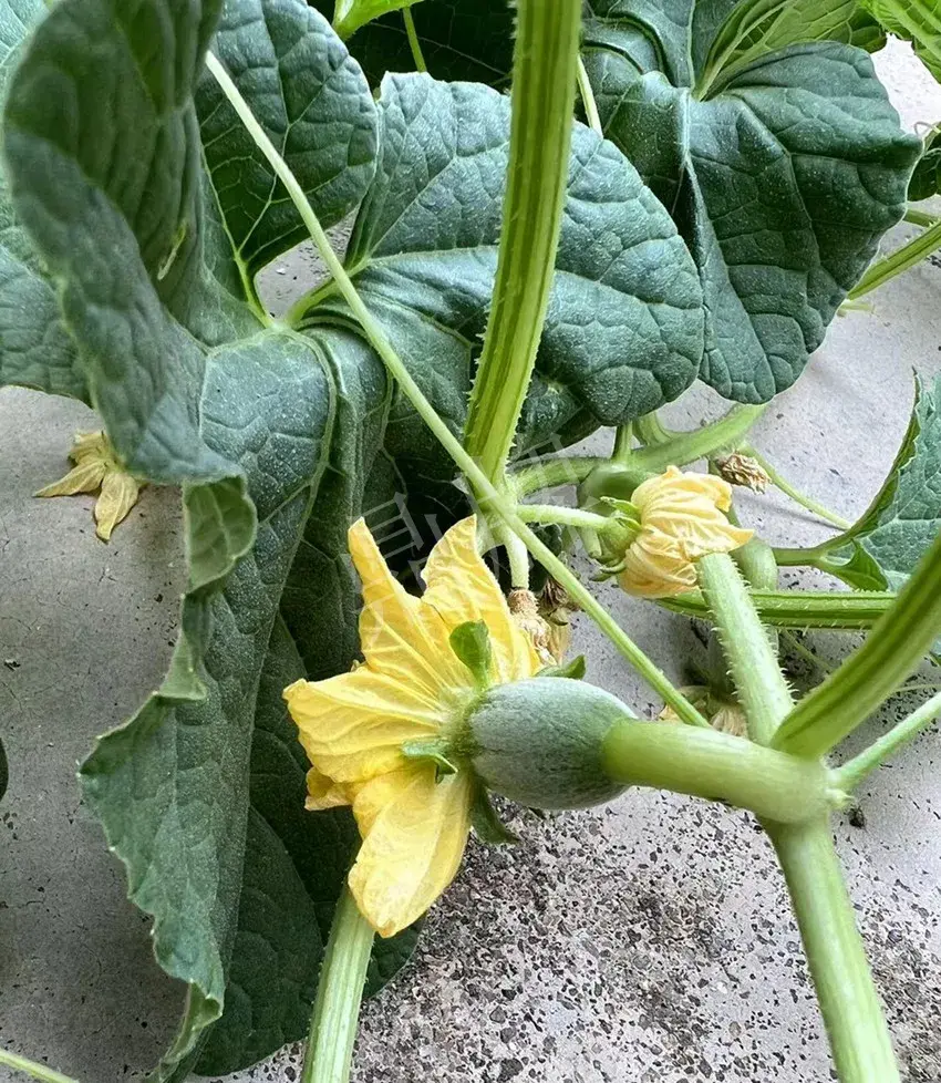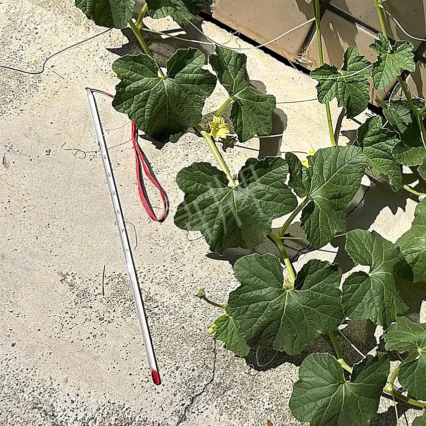 今日請(qǐng)各位看看本公司科研人員做的一個(gè)奇葩試驗(yàn)——在特高溫的條件下,讓甜瓜苗在水泥板上生長(zhǎng)。