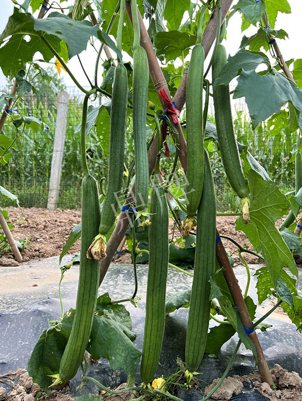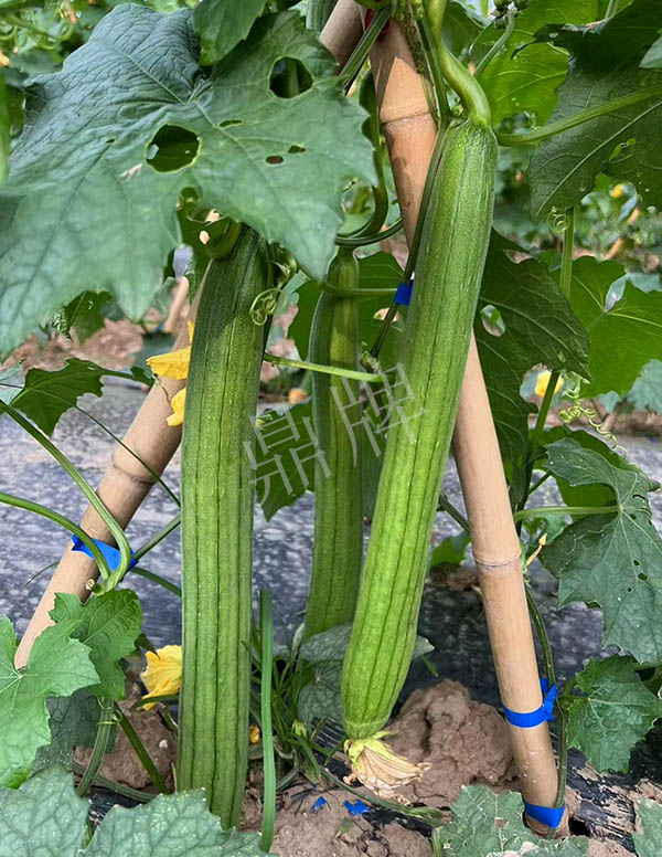 反交種子,極早熟,果皮更翠綠,坐果更多,產(chǎn)量更高;果長(zhǎng)45~50厘米,果重約400克,品味好。用種:15袋/畝。