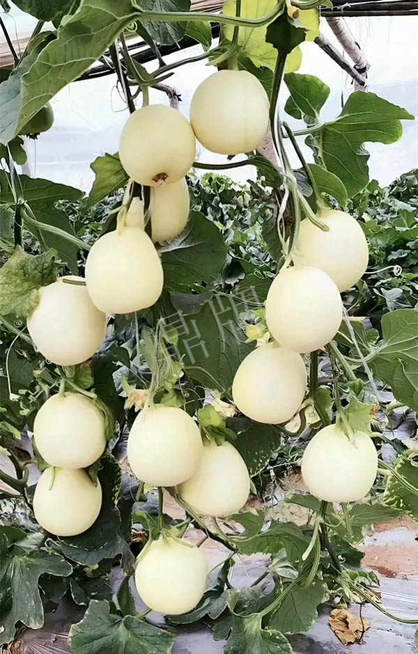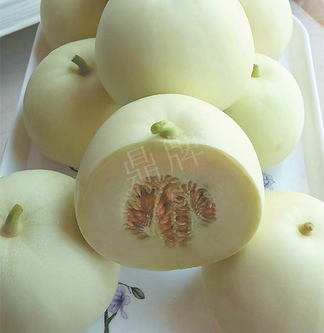 果實成熟后,甜度高達19度;果皮、果肉潤白,有一種天然質(zhì)感,看到就讓人喜歡;果肉厚達3厘米,這是薄皮甜瓜中難以見到的品種,連皮吃時能聽到“咔嚓”之聲,脆爽無比;坐果早而多,單果重650克左右;多雨天氣不易裂瓜,棚室、露地都能獲得豐產(chǎn)。